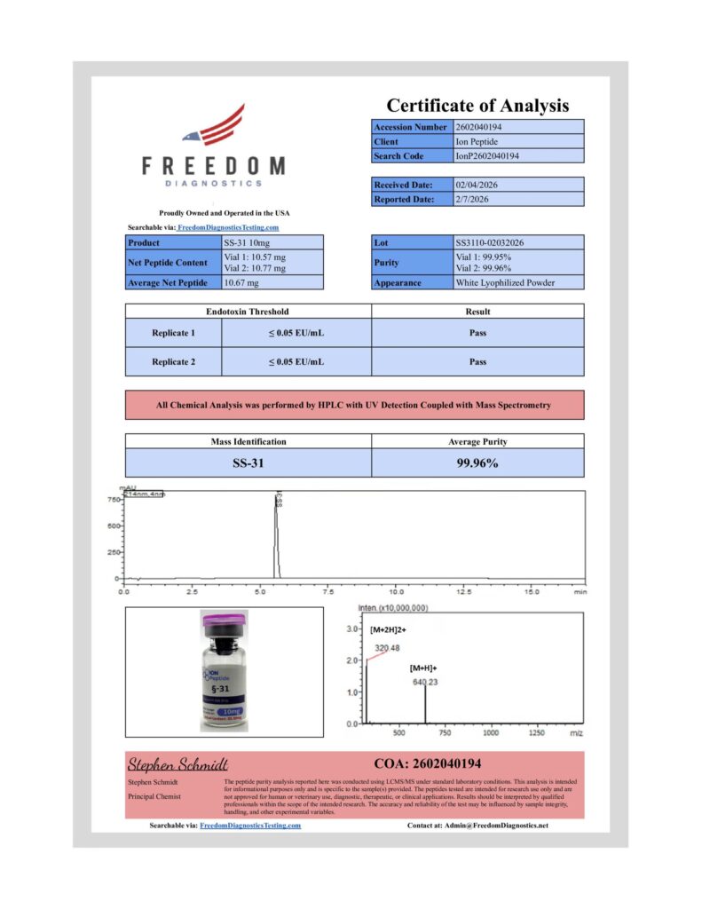 All batches undergo comprehensive UPLC/MS testing to check purity, confirm correct strength, and detect any impurities. This level of quality control provides researchers with materials they can trust for accurate and repeatable data.